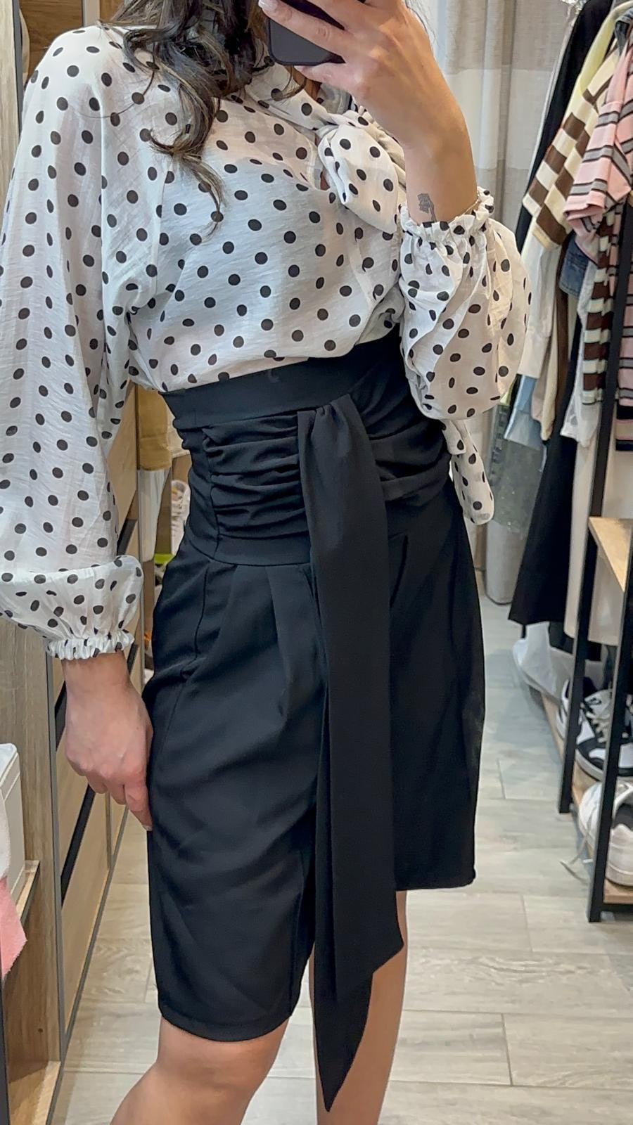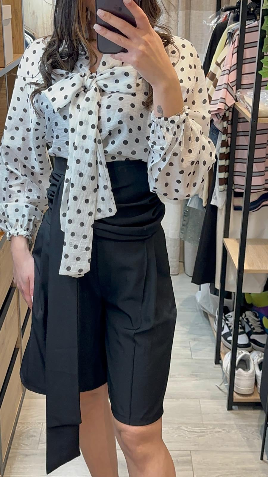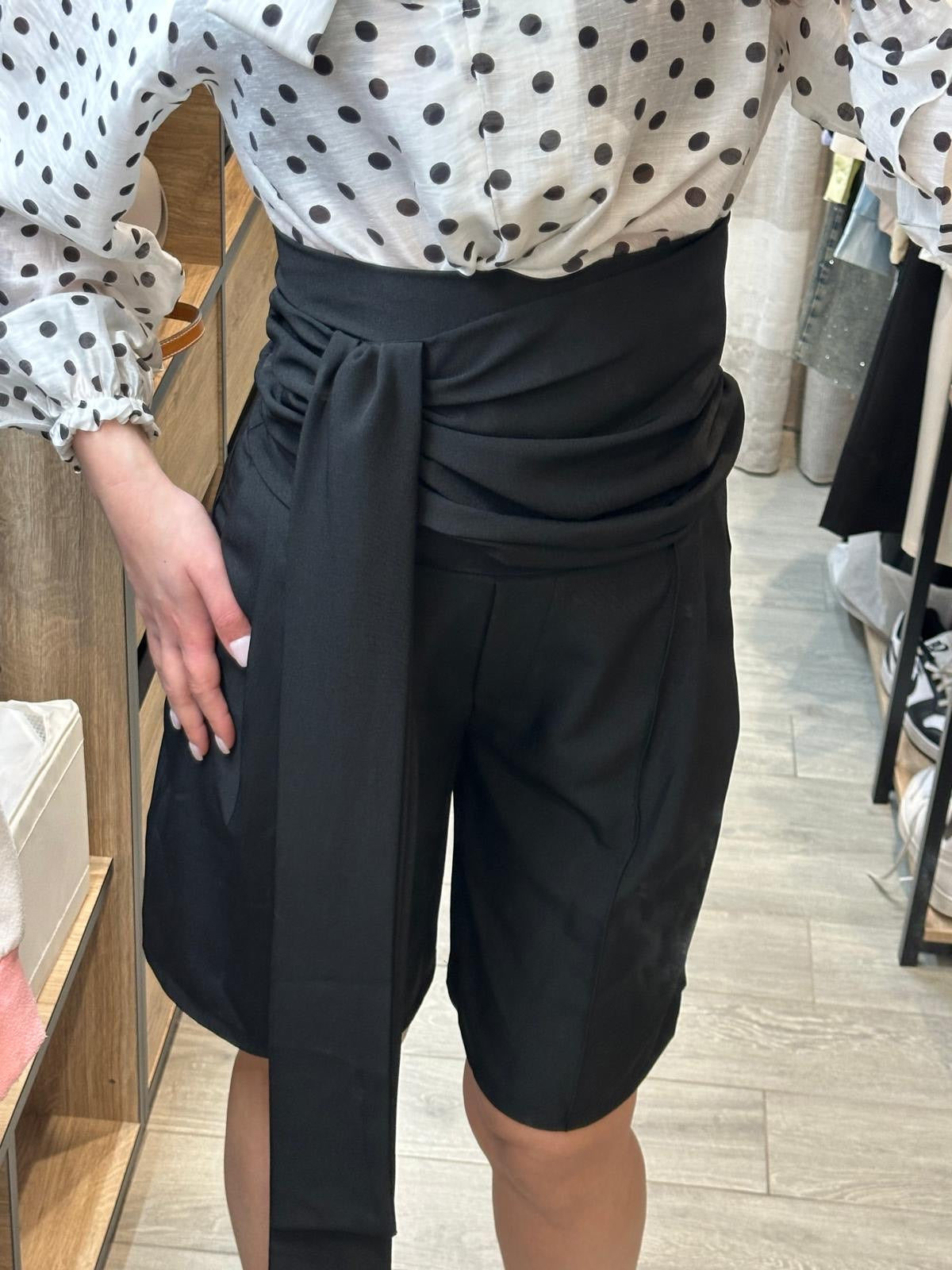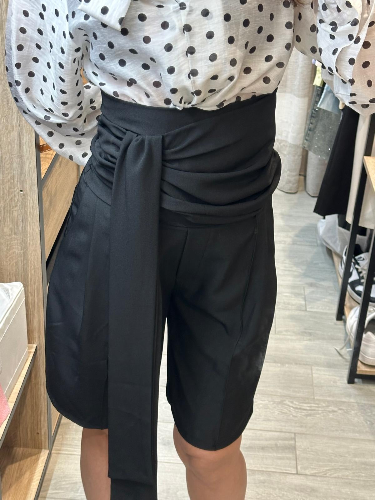 Descrizione: Bermuda Fascia alta - Chiusura con Zip posteriore - Drappeggio Anteriore con chiusura con fiocco