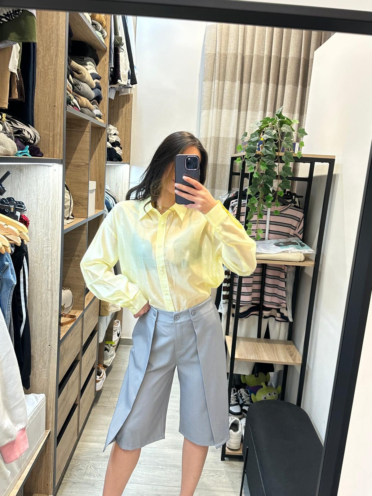 Descrizione: camicia modello over in velo trasparente , presenta bottoncini sul davanti e polsino.