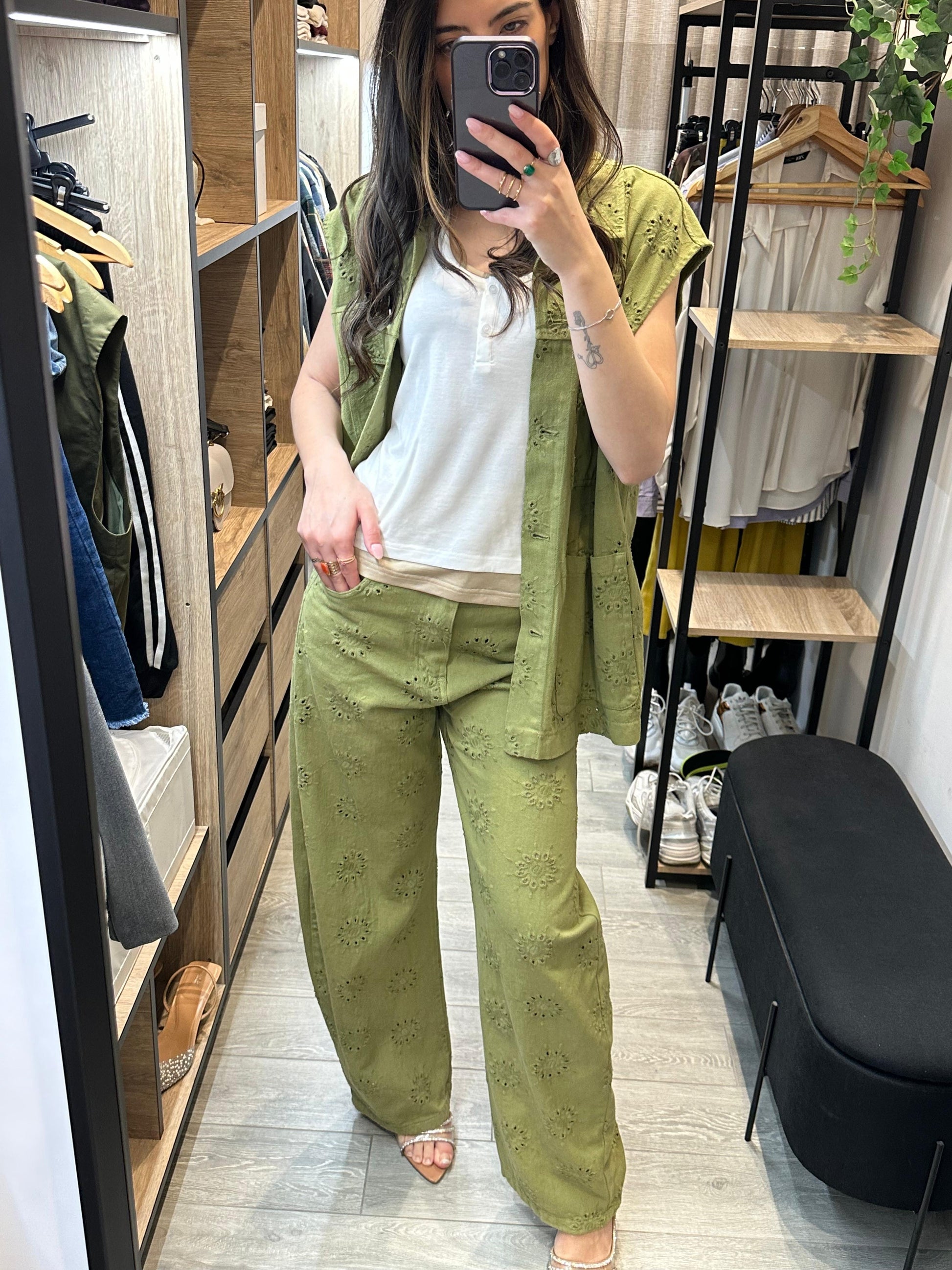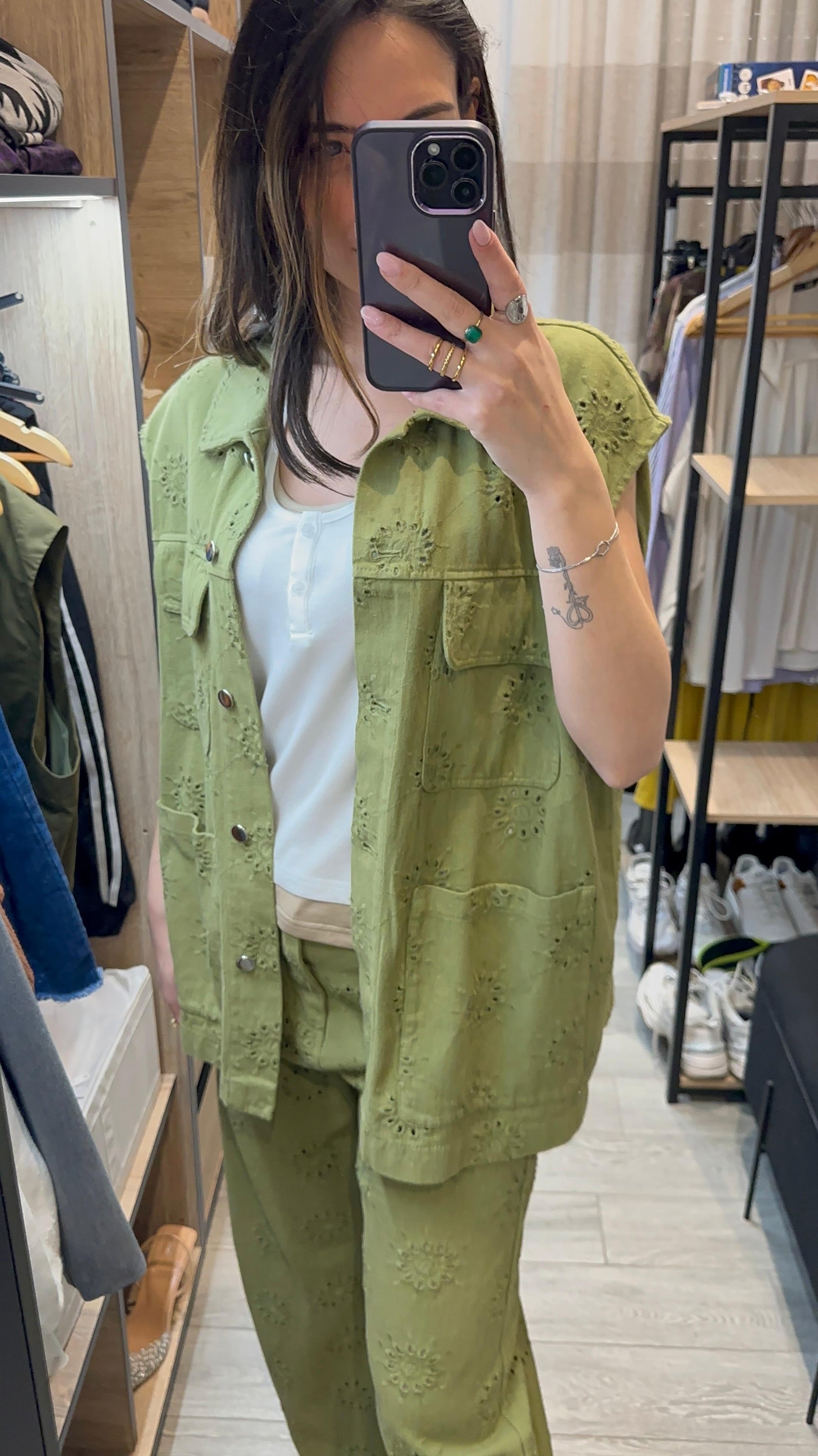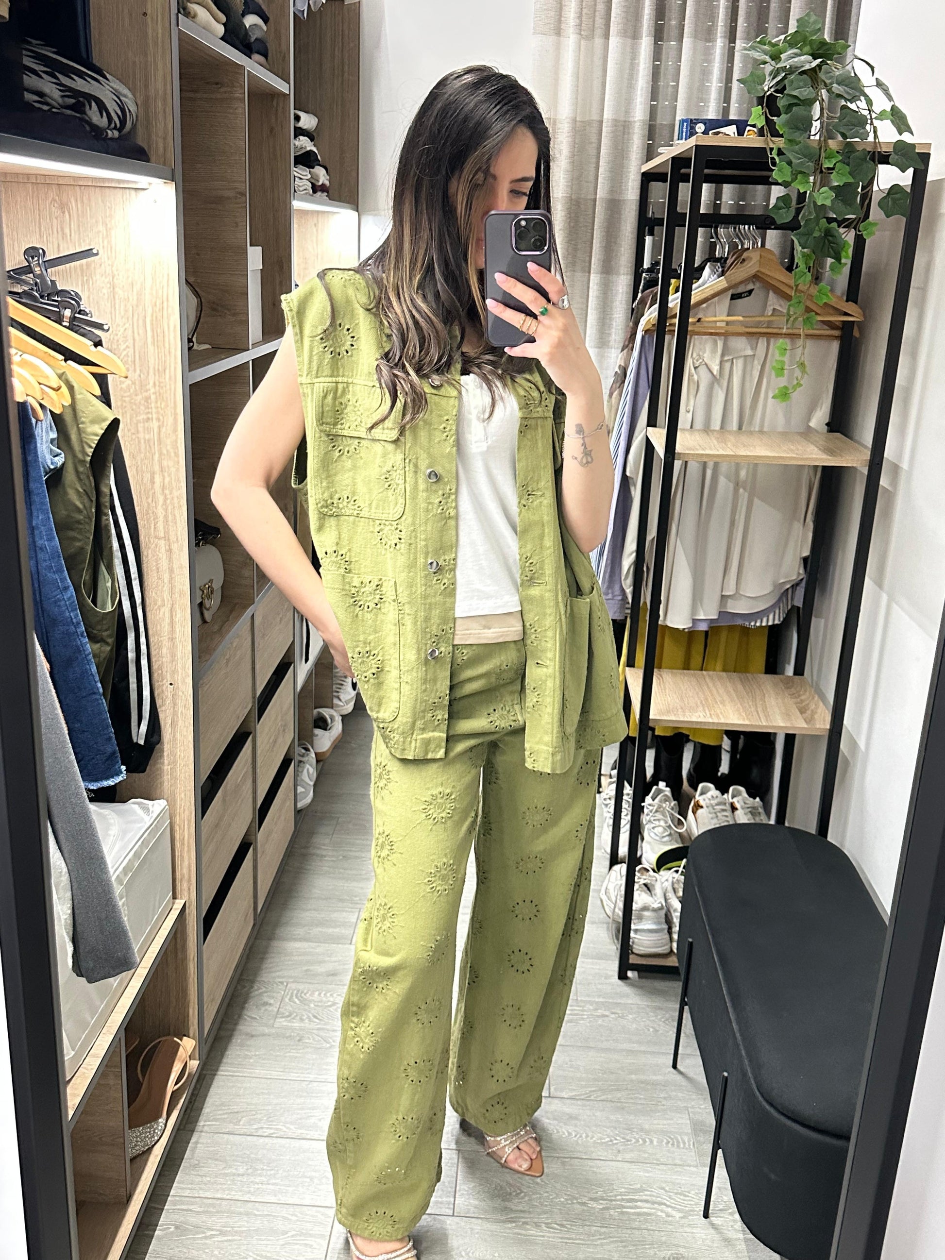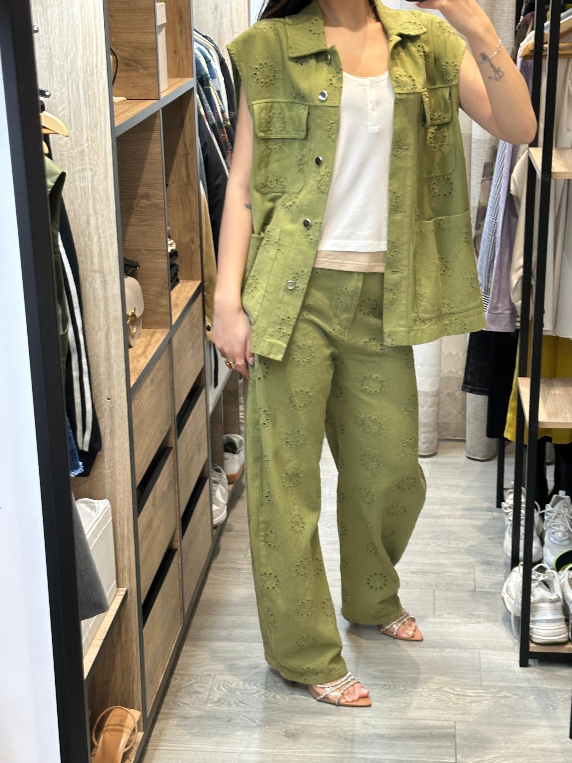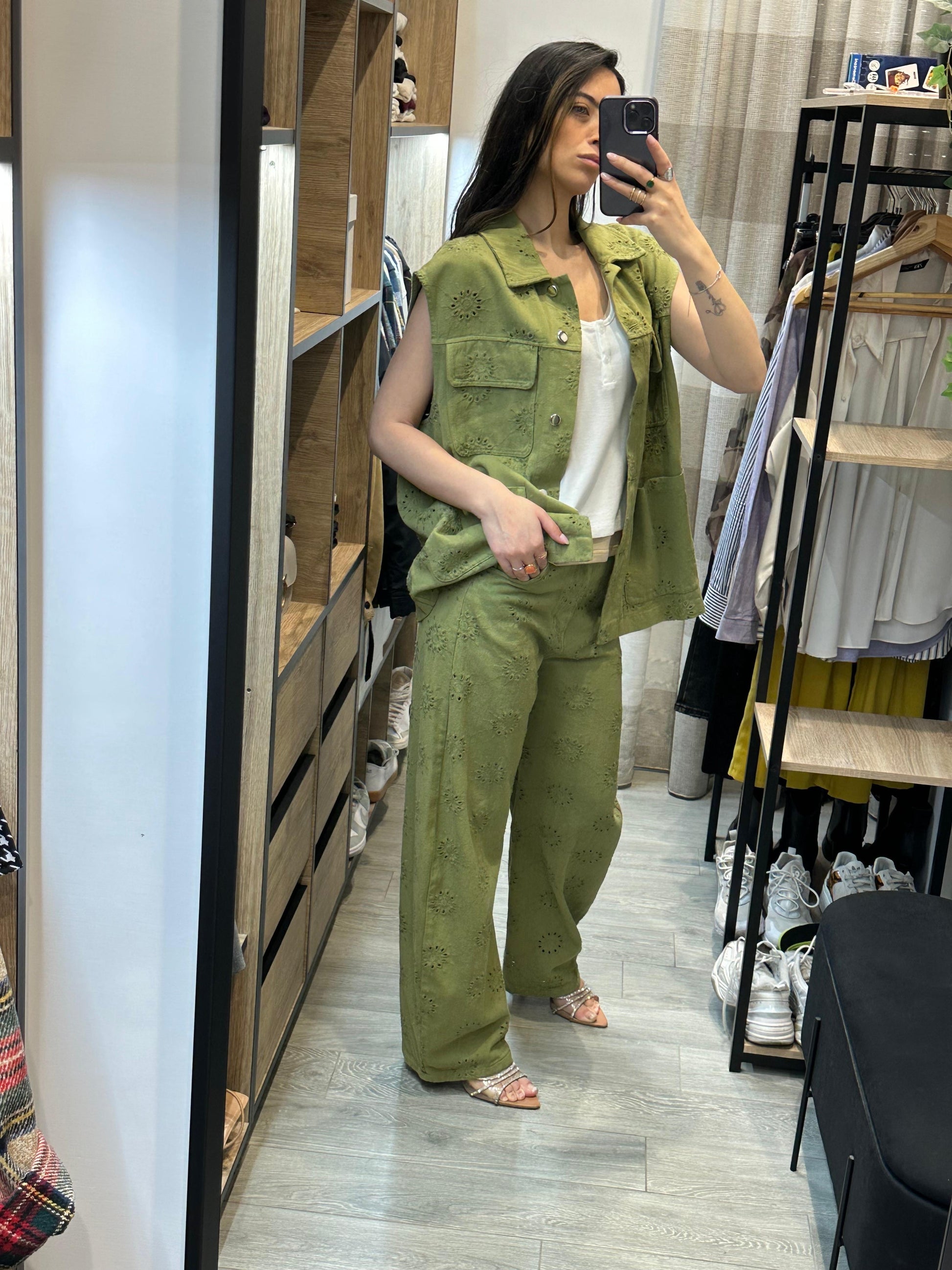 °Descrizione: Jeans baggy modello balloon in cotone con fantasia floreale traforata cinque tasche e passanti per cintura no-stretch chiusura con cerniera e bottone .