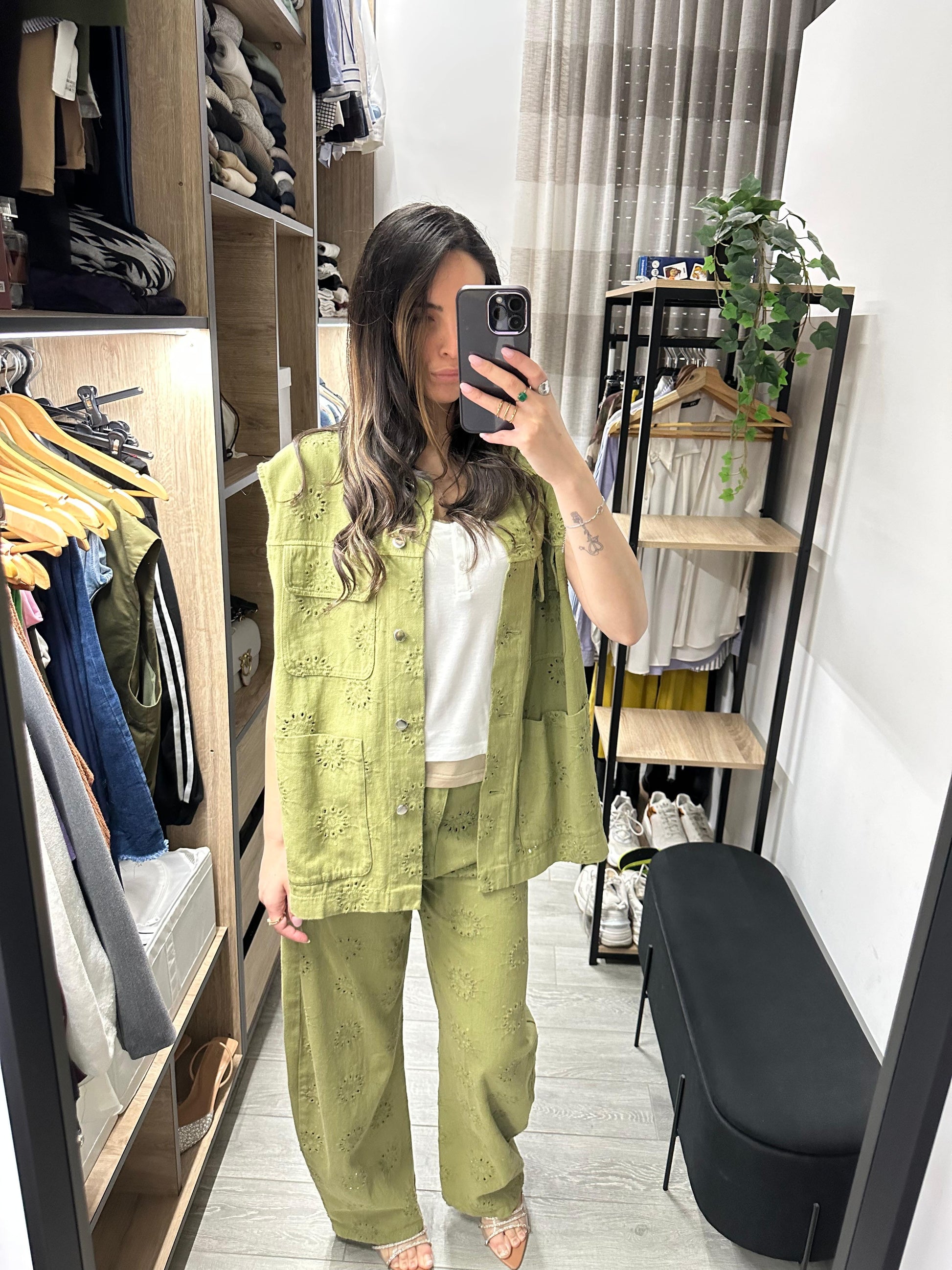 Gilet in cotone con fantasia floreale fiorata collo a revers due tasche con patta sul petto e due tasche a toppa sul davanti chiusura anteriore con bottoni
