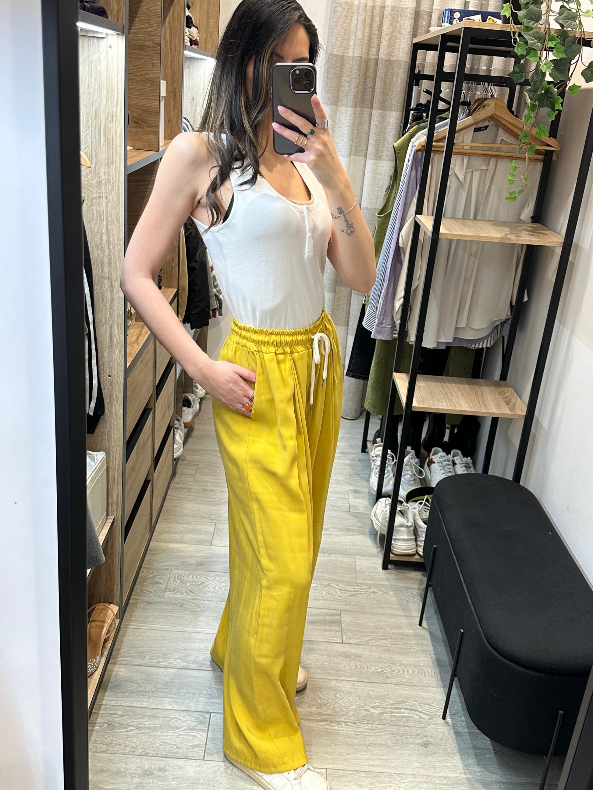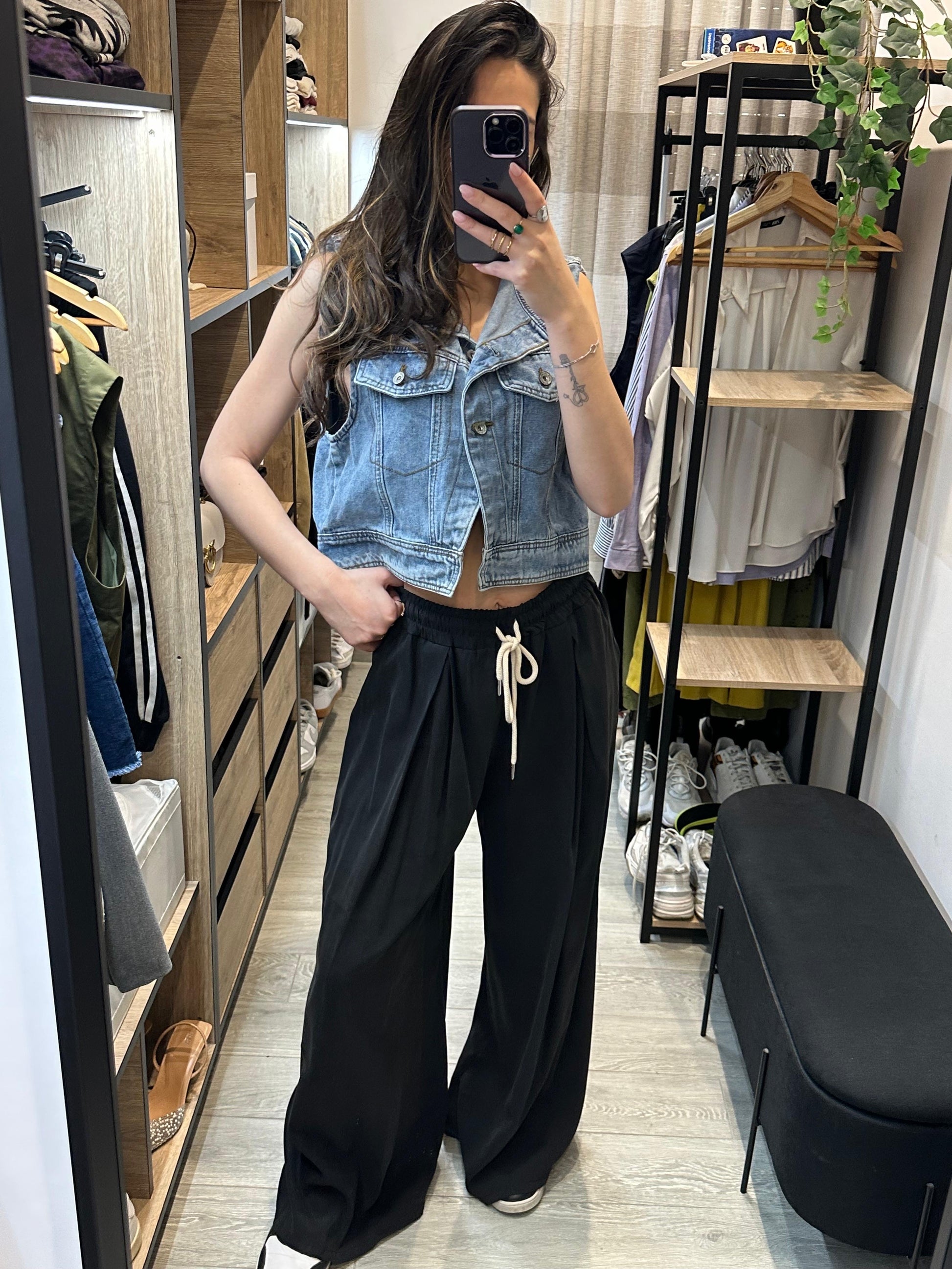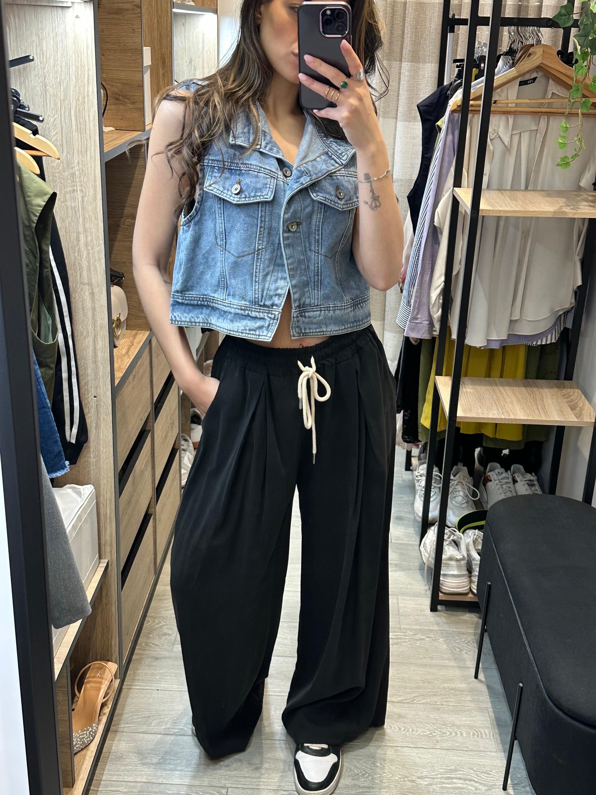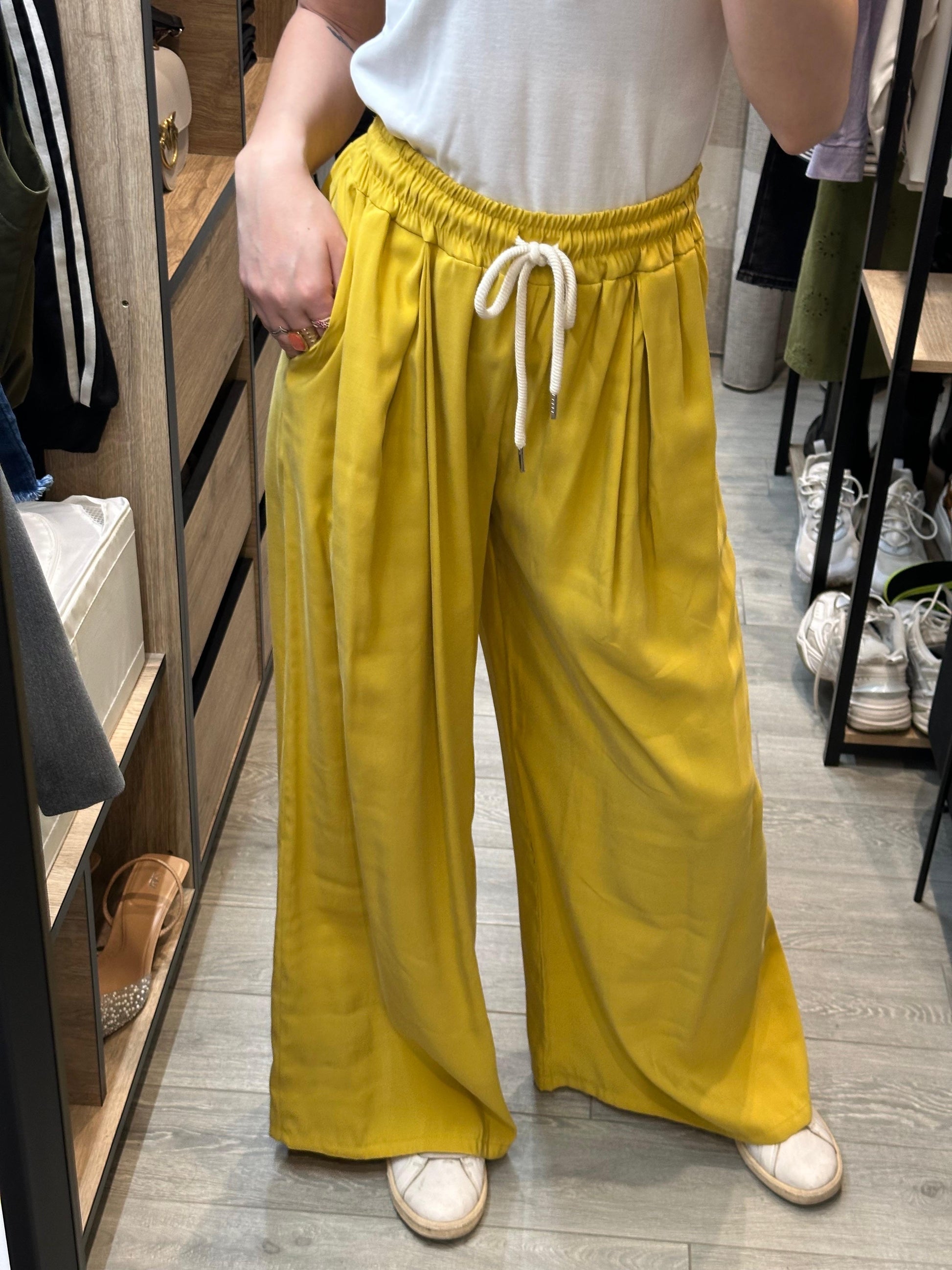 °Descrizione: Pantalone gamba larga con elastico in vita e laccetto regolabile.