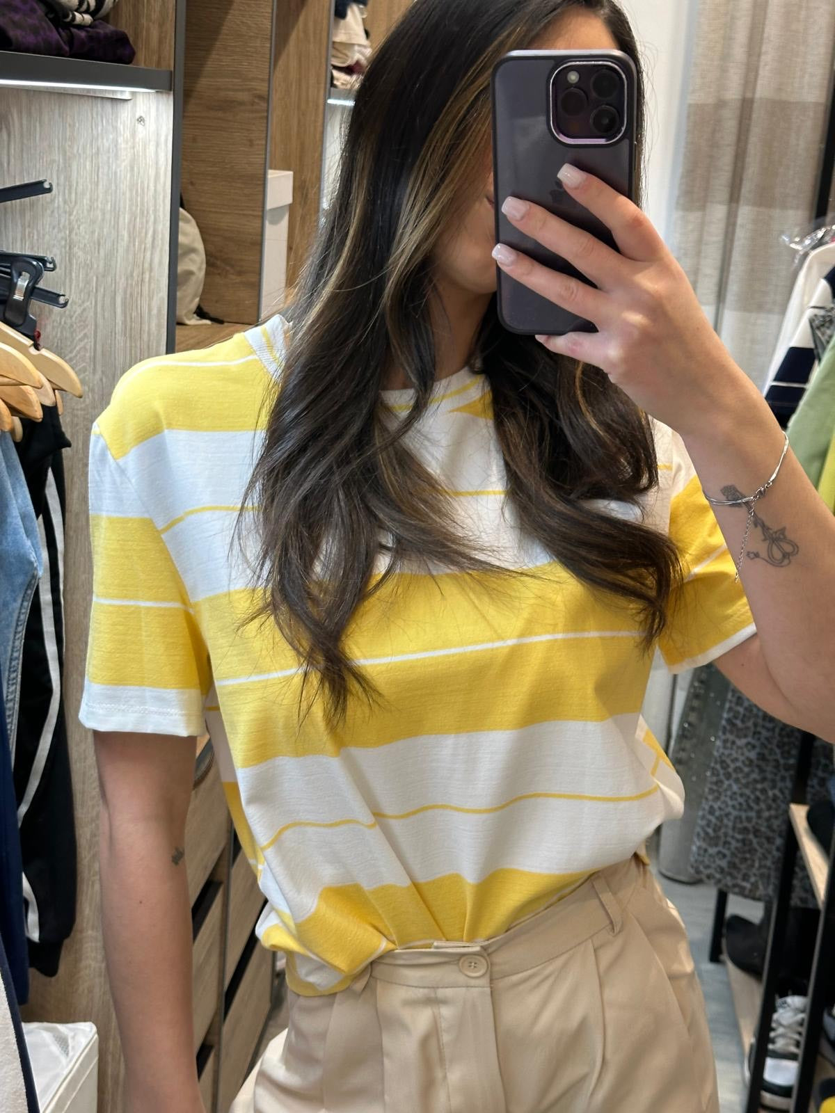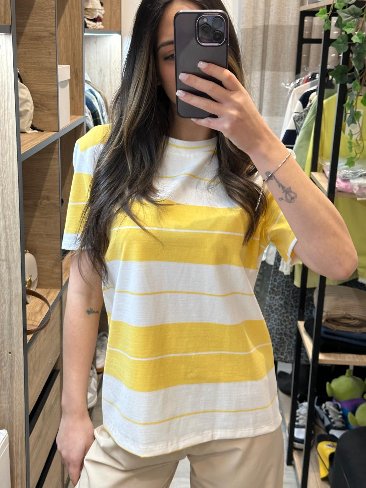 °Decrizione: T-shirt a righe Lumina con maniche corte e scollo tondo.